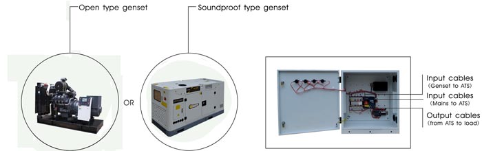 Indicators in different color for"Mains on load"and "Generator on load"