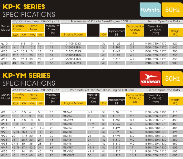 Brands: Cummins, Perkins,Deutz, Doosan, Mitsubishi, Kubota, Yanmar or other reliable Chinese engines such as Fawde and Laidong.